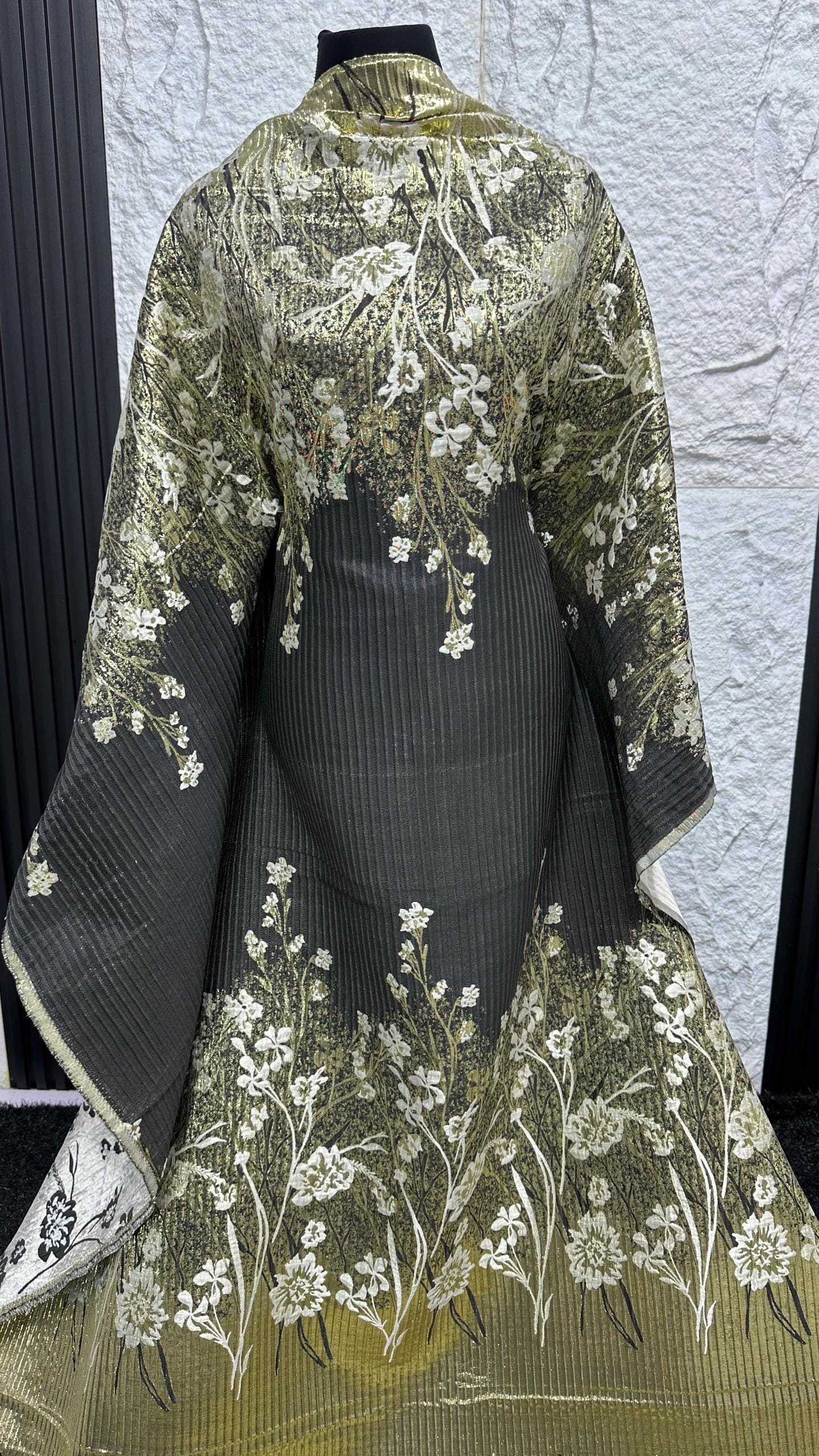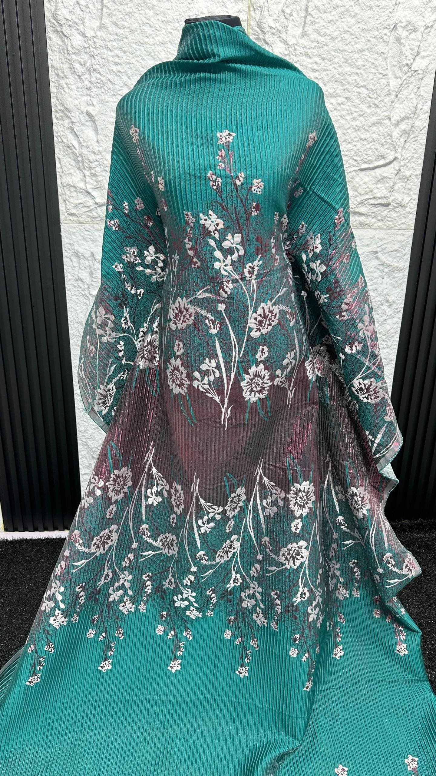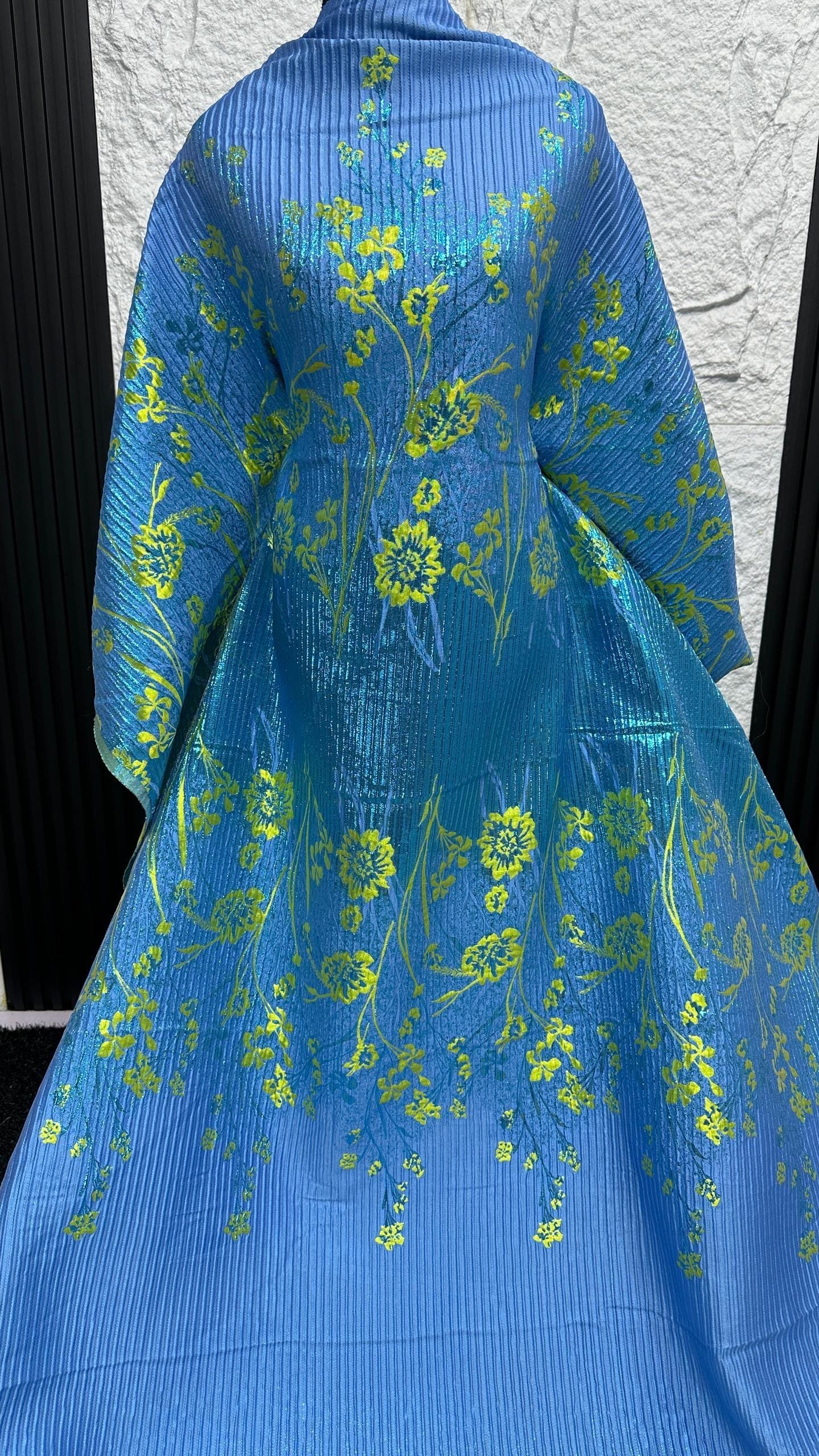 Each yard, measuring a generous 36″ x 60″, is meticulously crafted to showcase intricate damask motifs, interwoven with a luxurious, pleated texture that dances with light and shadow.
